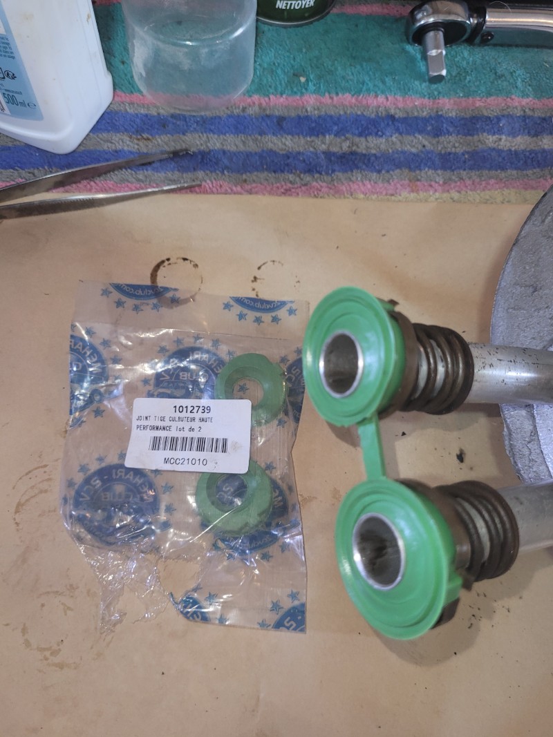 Changement des joint lunette par ceux en viton du MCC Je remets les cullasses en place après avoir lubrifié les tiges des culbuteurs.