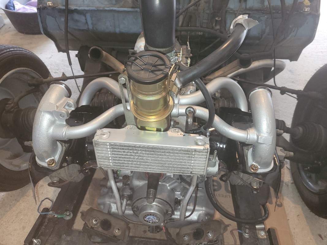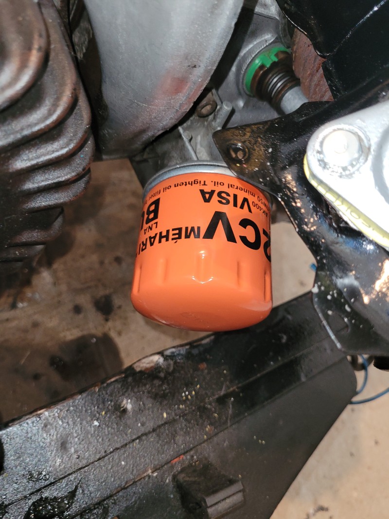 Bv Et filtre à huile (il est trop beau en orange Burton) Et l'huile J'ai fait tourné le tout à la manivelle pour faire un peu circuler.