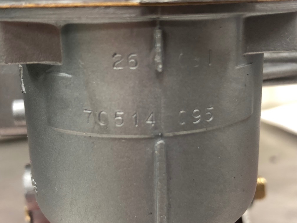 Ce carbu est inhabituel car c'est un 28 CBI (diamètre de la buse au niveau de la semelle), avec une buse de 22 (de fonderie sur le corps-cuve) et il est gravé 26 CBI.