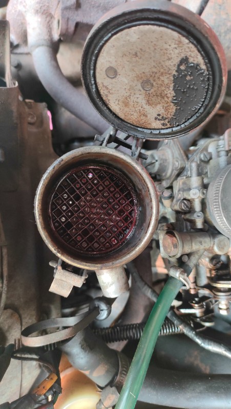 Dépose du reniflard, en attente du neuf de chez Burton. La durite d'huile n'avait aucun collier, toute craquelée.