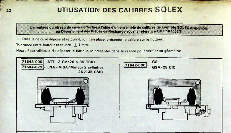 Conformément à la RTA page 75, le niveau de cuve est à régler à 21 mm ± 1 mm:
