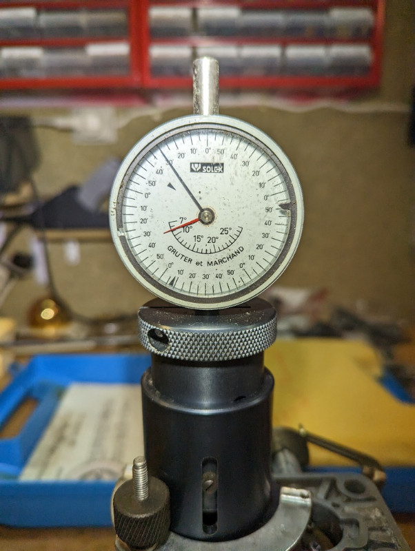 Mon réglage est un micro-chouilla en-dessous de 21 mm, donc c'est tout bon car il faut entre 19 et 22 mm. Notez que quand j'ai démonté le carbu, j'ai mesuré le réglage à 17 mm avant que je ne le corrige.