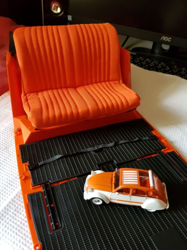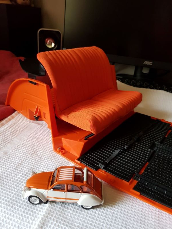 Vous remarquerez le détail de cette maquette : il y a même la poignée pour déverrouiller et enlever la banquette !