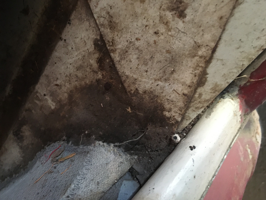 Il y a TOUT à revoir : planchers rivetés sur deux épaisseurs (!), bas de caisse percés, intérieur (plus récent) déchiré.