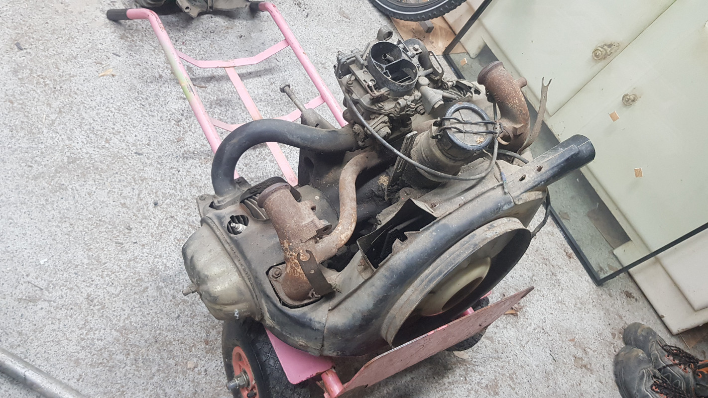 Je vais donc la voir, elle est niquelle !!! et je repart donc avec une boite, un moteur am2a complet, une sortie d’échappement, un volant moteur en rab et des enrouleurs de ceinture avant !! le tout pour 200€ !!!