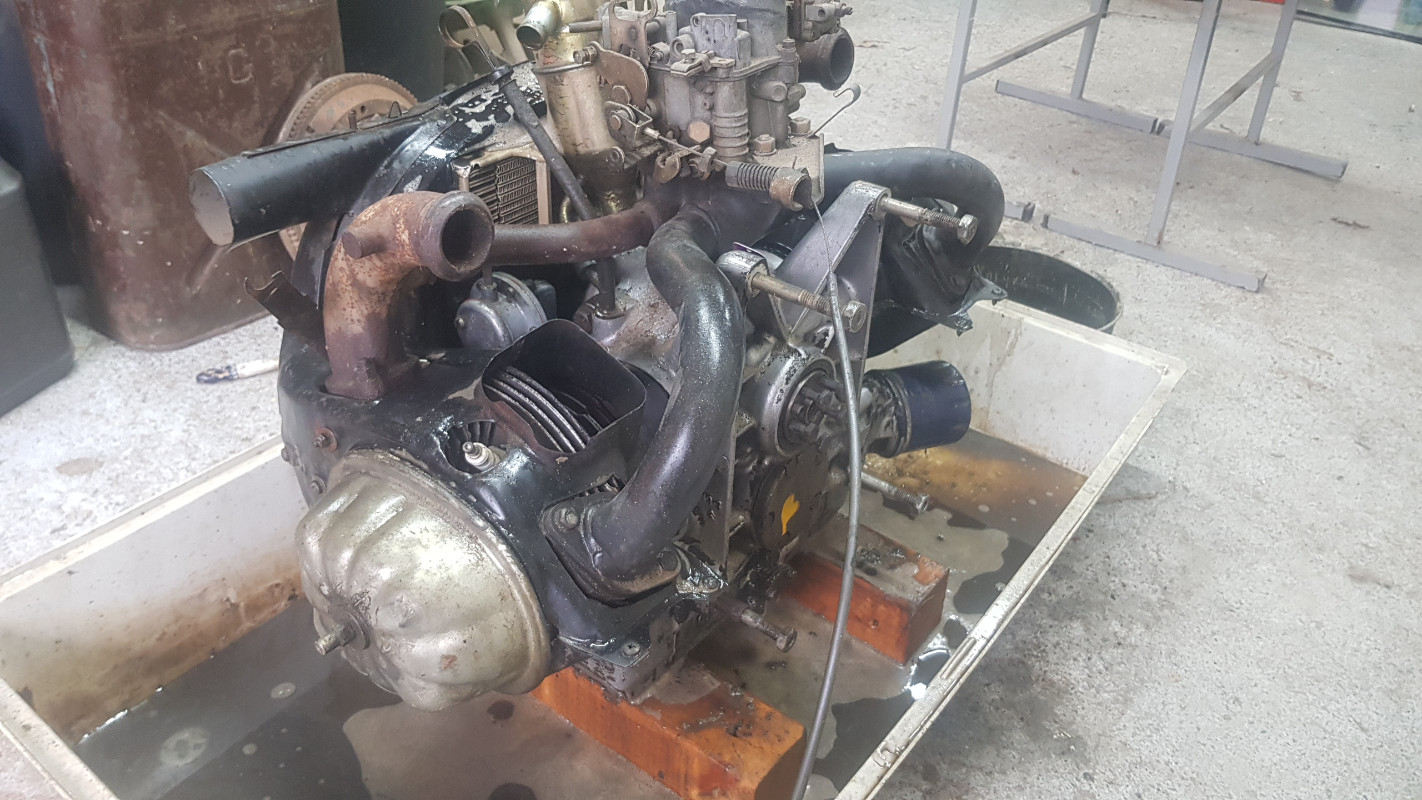 Puis... premier dégraissage du moteur : Et enfin... Démontage des couloirs de refroidissement et second dégraissage a la brosse a dent ....! :