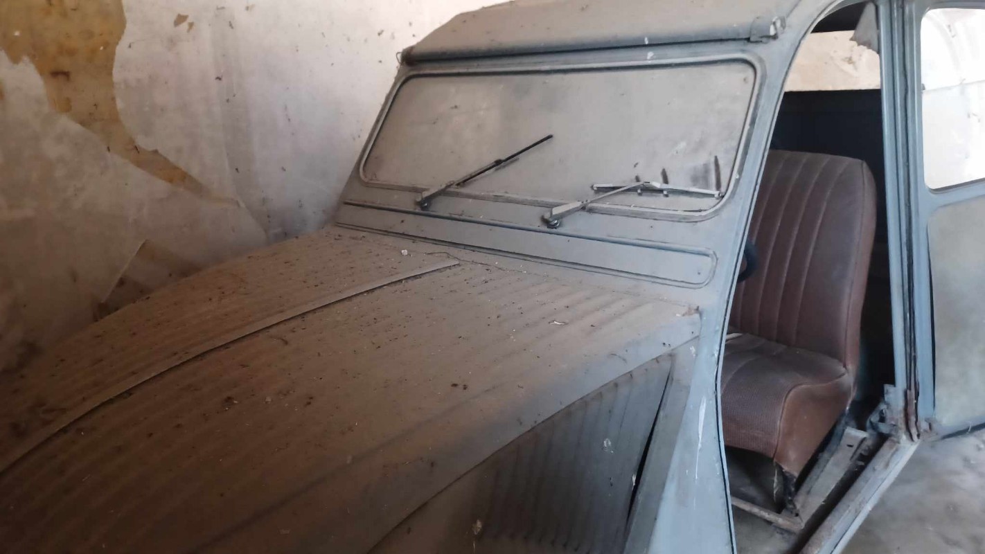 Bon, je ne vous dis pas ou elle est pour le moment :siffle: , mais j'ai trouve cette 2CV qui n'a pas bouge depuis 20, 30, 40 ans? Petite seance devinette pour voir si quelqu'un peut determiner l'annee avant que la proprio retrouve la carte grise... Mon collegue finlandais dit 64, mais elle a encore les portes suicide, et deja la custode arriere :???: