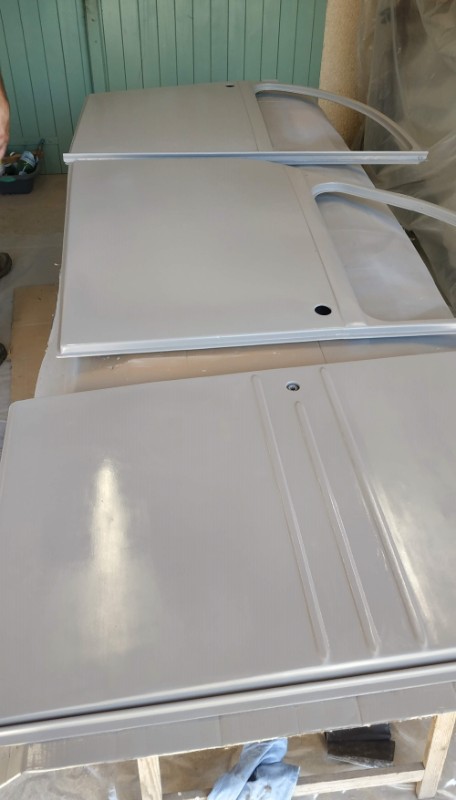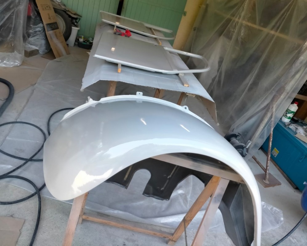Ducoup, on a peint une première couche sur 2 portes (int/ext), sur une ailes avant, sur la malle arrière, dans le fond de coffre et une partie de l'intérieur de la caisse.