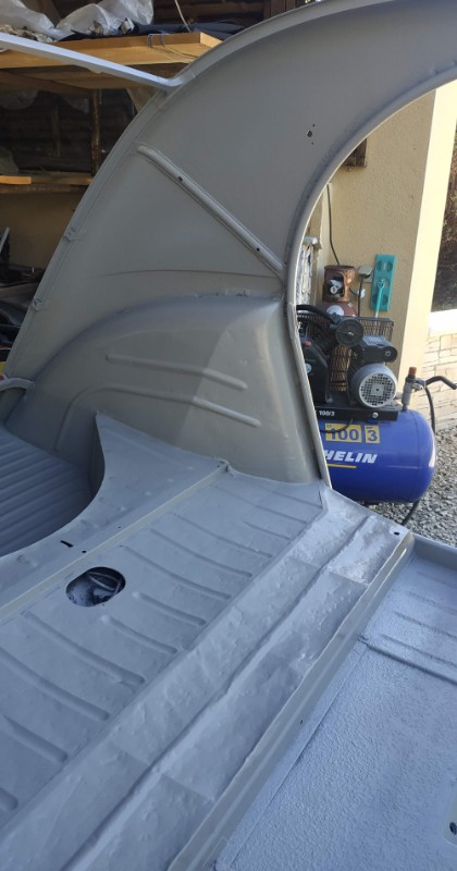 Aujourd'hui, mon père à mis en apprêt la voiture (int et ext), il y a deux trois couches.