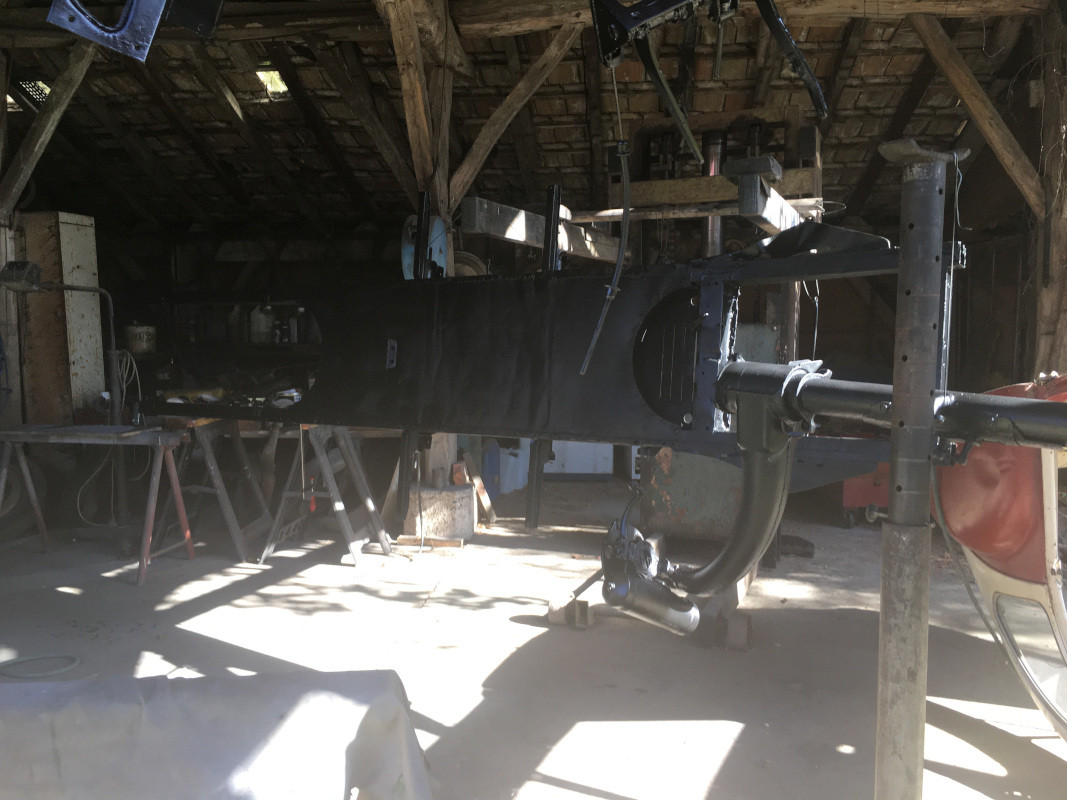 Donc, j'ai choisi de remonter les éléments du châssis de la 2CV, afin de le rendre roulant et ainsi dégager l'espace de travail !