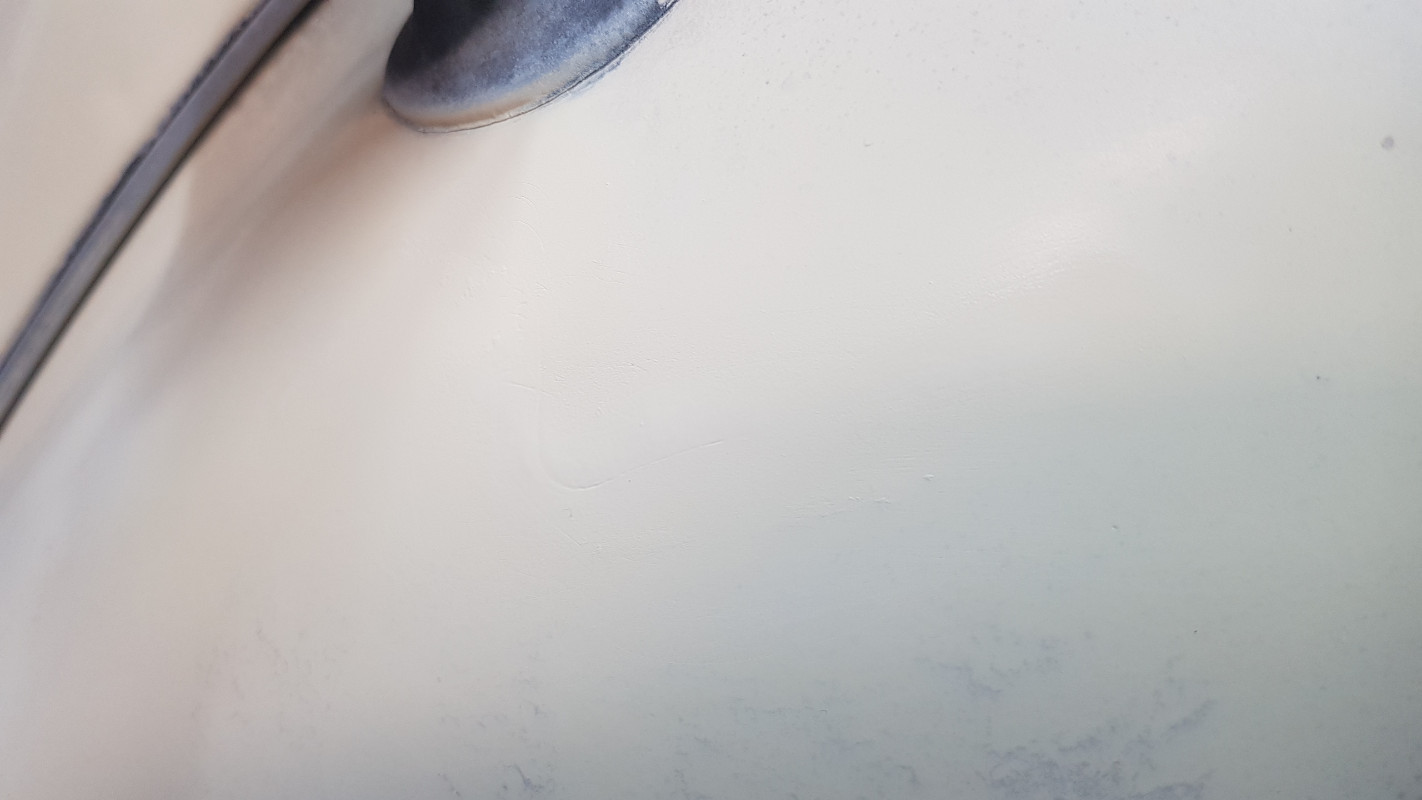 Puis je me suis dis que j’allais d'abords faire un essai sur une vilaine rayure causée lâchement et sournoisement par un pistolet de pompe a essence un peu trop agressif !... on se méfie jamais asser de ces bettes la !!! :