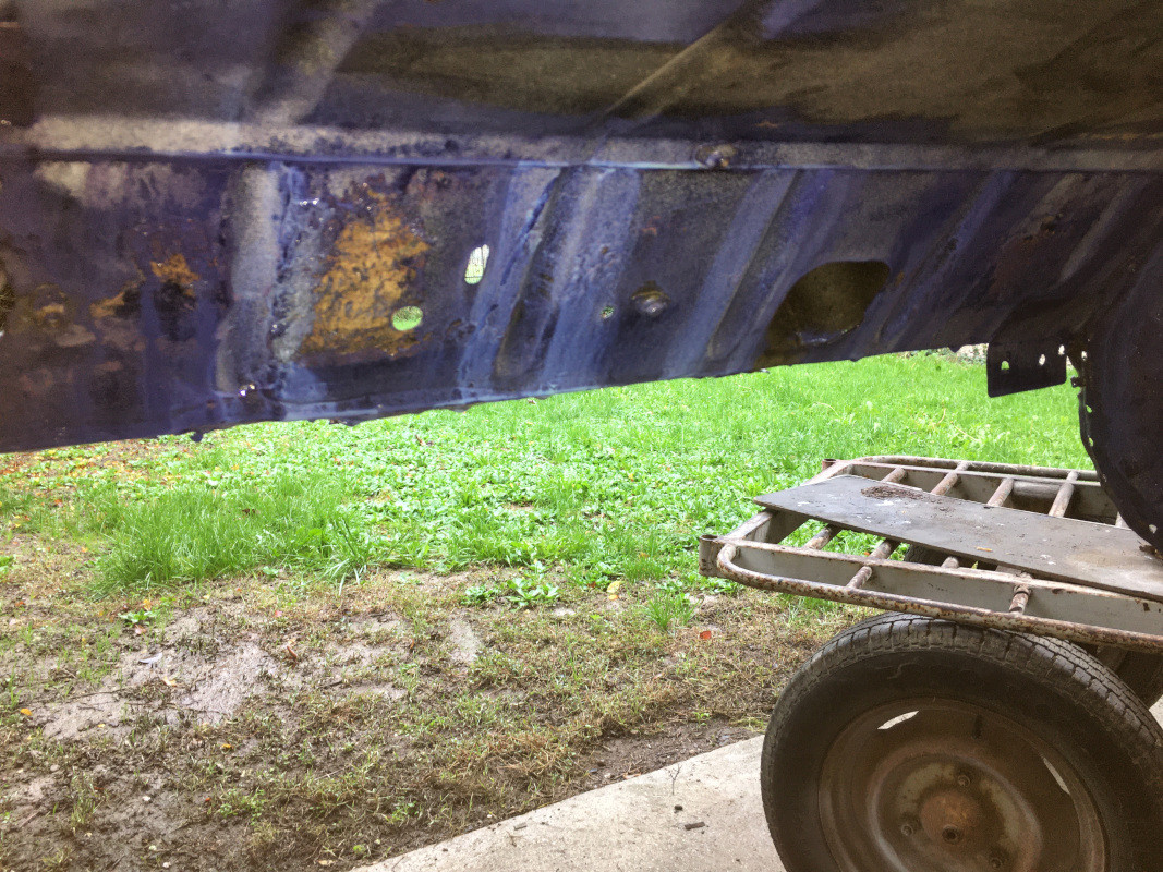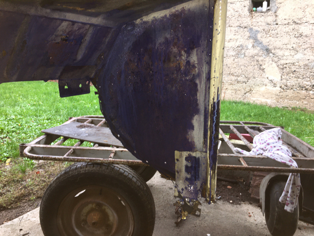 Ce matin, j'ai repassé une couche de FEROSE sur la première, passée mardi dernier. Je pense qu'il vaut mieux réaliser plusieurs couches de ces produits, au pinceau d'abord, puis au pistolet, pour faire en sorte que le convertisseur de rouille passe le plus possible entre les tôles