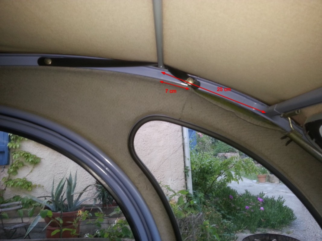 Pour info, voilà mes cotes (Attention à ne pas te baser sur la traverse de la capote, comme tu le vois, son emplacement est variable :