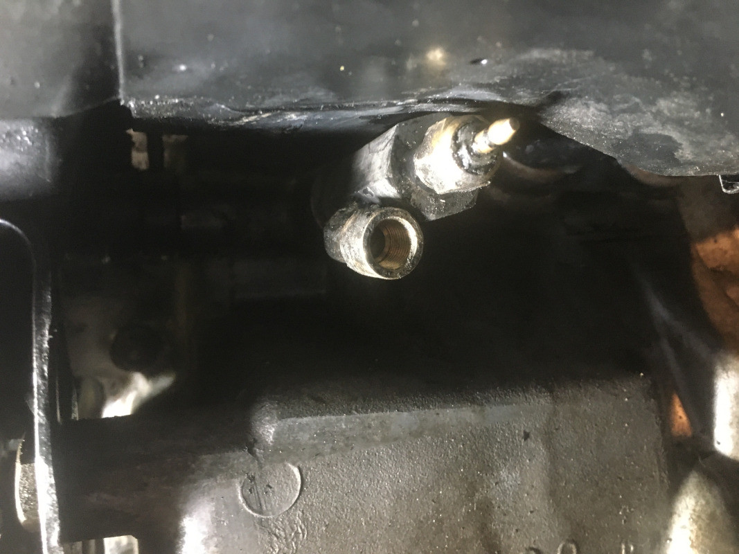 Je me suis procuré le raccord intermédiaire 12x150 - 1/8" NPT, pour le visser à la place du bouchon existant, côté gauche du moteur, mais la sonde de pression d'huile est vraiment volumineuse, elle ne passe pas..