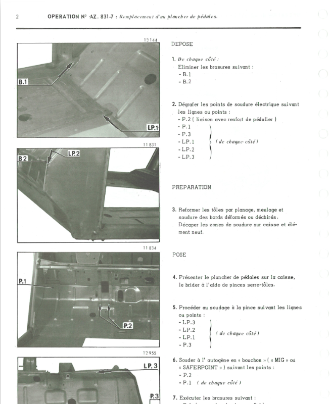 Re: Rempacement tabier avant /plancher sous pedale /plancher d et g sur 2cv - dépointer toutes les soudures ?
