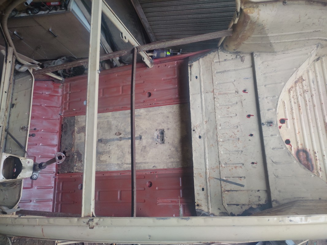 Oui j'avais soudé le cadre avant démontage, si @Pyl passe par là il peut voir le cadre en place soudé à 30 cm au dessus des bas de caisse ça permet un meilleur débattement pour travailler, et ça maintient surtout l'ensemble car je ne compte plus les fois ou j'ai tourné et retourné la caisse, cet après midi elle a même fait un quart de tour toute seule, je l'avais couchée sur le châssis pendant les vacances et en montant dessus la suspension me l'a éjectée heureusement rien de plié. J'ai tout soudé à l'extérieur à côté de la plate forme je l'ai juste reposée aujourd'hui pour voir si j'étais bien en face des trous, je voudrais finir tous les travaux de soudure meulage avant l'été pour éviter toute fumée suspecte visible de la vigie au dessus.