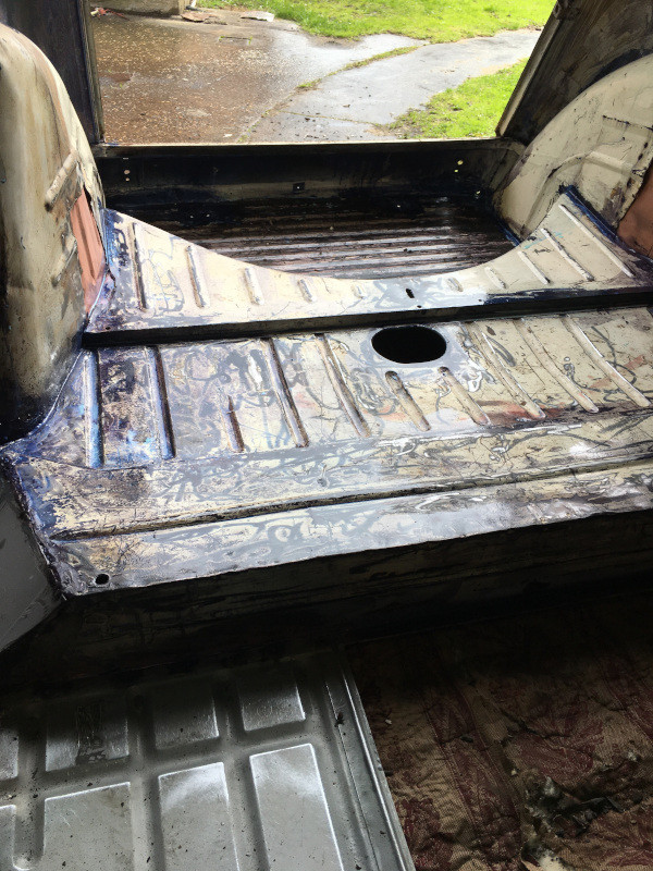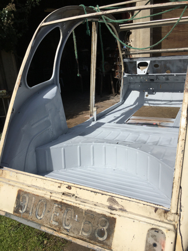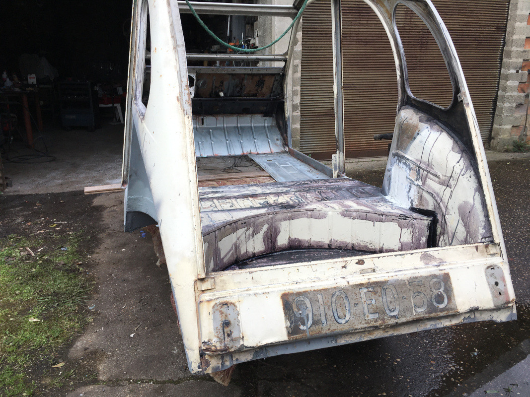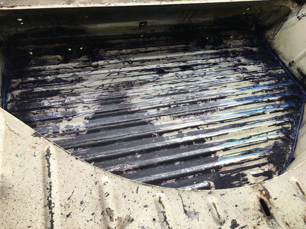 Ce matin, j'ai brossé, gratté, poncé le fond de coffre, qui était bien attaqué de ce côté-là aussi..