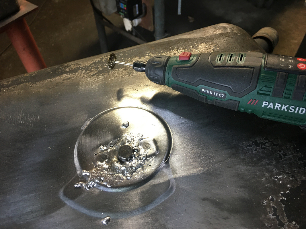 Eh bien, j'ai quand même tenté une soudure car le fond creux est percé de multiples petits trous.
