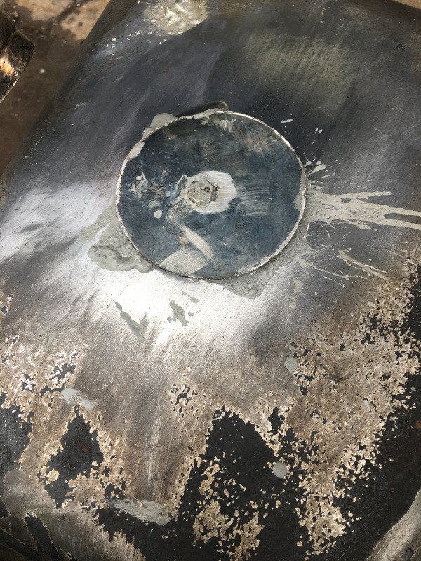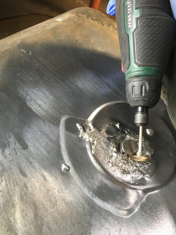 Ensuite, j'ai tenté le tout pour le tout pour sauver le réservoir : je sais déjà ce que diront certains, avec raison. C'est une pièce de sécurité, un réservoir ne se soude pas, un neuf vaut moins de 100 €, etc..