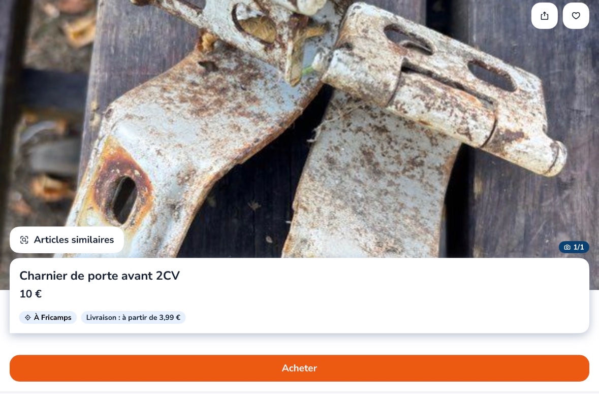 Le prix est un peu exagéré... beaucoup; il y a un zéro de trop. Triste de voir qu'il faut investir 5000€ pour acheter une 2CV à restaurer !?