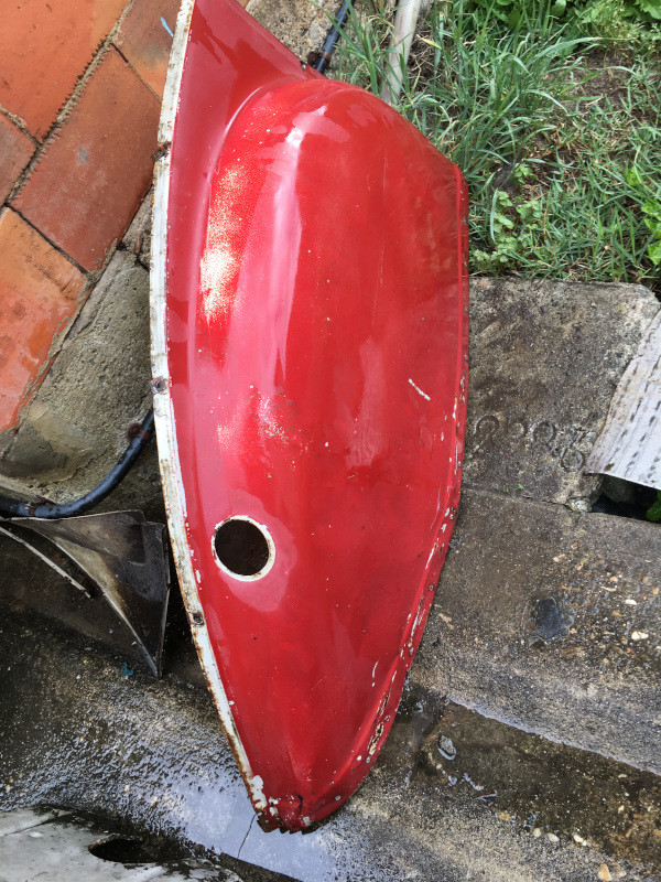 J'y ai versé un litre de GNR à l'intérieur pour tester les éventuelles fuites... Et protéger l'intérieur de la rouille, au passage !