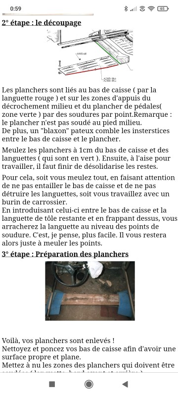 Ne crois pas que tes planchers vont tomber juste en dépointant, il faut jouer du burin de carrossier entre les tôle il y a toujours un point que l'on a pas vu et le mastic, et c'est là que la pièce rectangulaire elle aussi tenue avec 4 ou 5 points peut être coupée par erreur. Il y a sur le forum des schémas avec les zones de pointage.