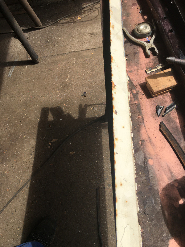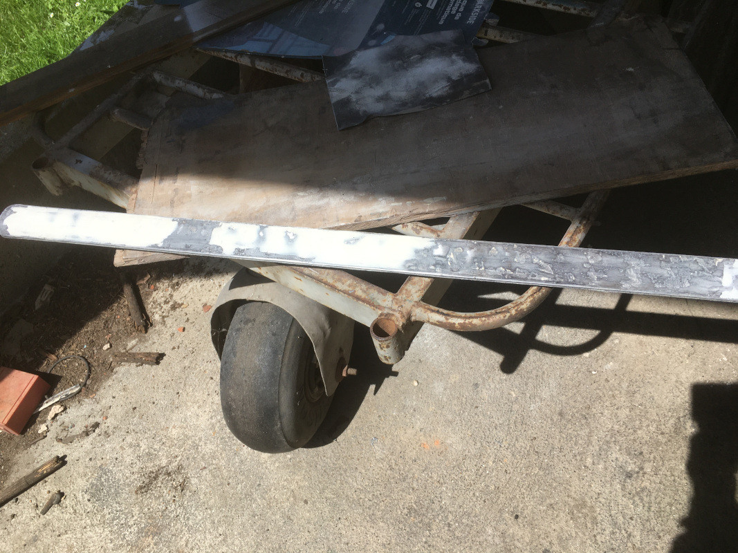 J'ai donc soudé les tôles du pare-chocs mais en employant des tôles neuves, d'une épaisseur de 1,5 mm qui serviront de support du capot fermé.