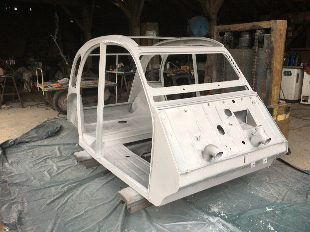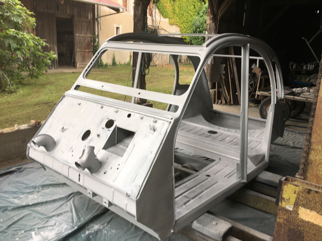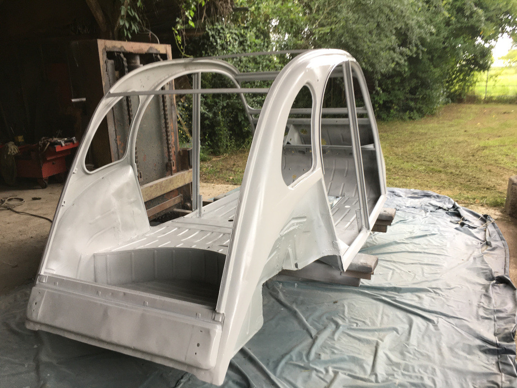 @Damien25 : je vais fixer la caisse sur le châssis, puis monter les équipements : garnitures, mécanique, électricité, éclairage, tableau de bord, sièges, pare-brise, glaces de custode...