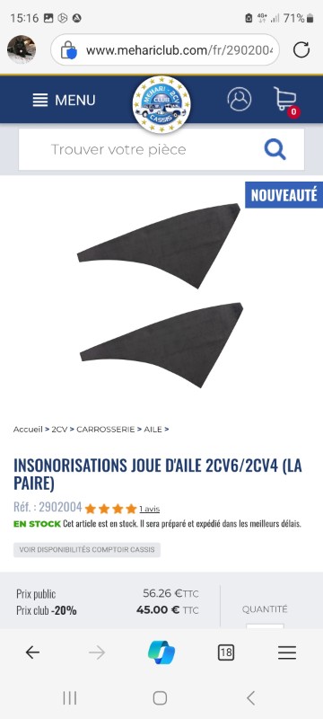 - et enfin l'isolation : comme pour une maison, on cherche à rendre une paroi étanche (ici au bruit). Pour cela on cherche à faire un 'systeme masse ressort'. C'est un système résonant, qui va amplifier le bruit à une fréquence, mais beaucoup l'attenuer après.... pour cela on part d'une tôle (si possible épaisse, ça commence mal !), sur laquelle on met un 'ressort' (mousse polyurethane ou feutre generalement) puis une couche de 'masse lourde', qui est generalement un bitumeux recouvert d'une face de style : c'est typiquement ce qu 'il y a sur le tablier des 2cv ! Ça marche à partir des moyennes frequences (on va dire 400hz).