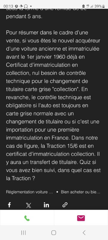 En effet le ct n'est pas requis pour un véhicule immatriculé en collection datant d'avant 1960.
