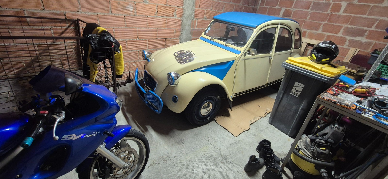Et titine au fond du garage derrière la bécane.