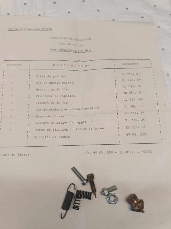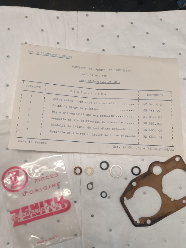 7 - quel est le contenu de ta pochette de joints, origine Zénith, pour Citroën ? Tu peux faire une photo ? Merki !