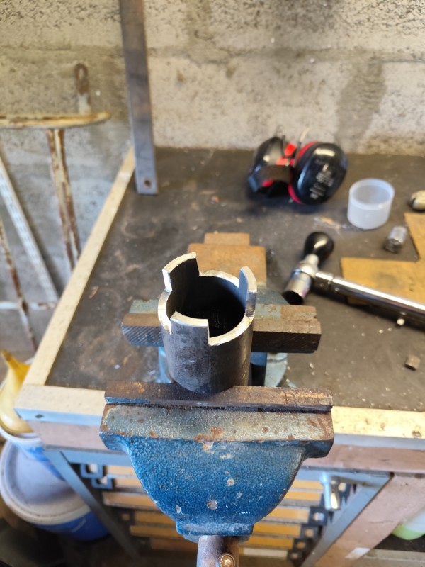 Pour la clé je l'ai juste meuler un peu pour désépaissir la tête. Il y a pas trop de place au niveau des écrous de réglages des pots.