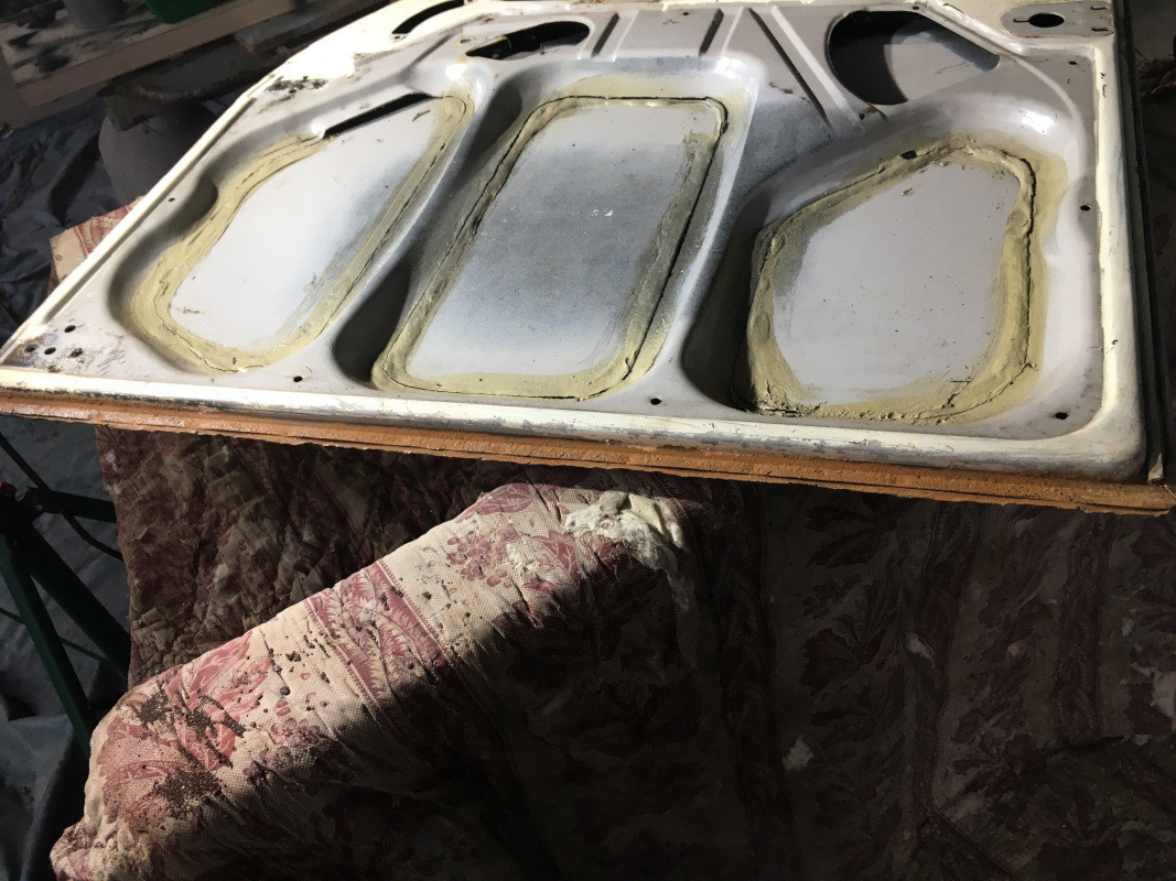En ce qui concerne les feuillures qui pincent le joint, les miennes étaient aussi pourries mais en démontant j'ai vu qu'elles ne sont soudées que sur 3 points (extrémités et milieu), la partie inférieure est elle juste prise en sandwich avec le repli de tôle de la portière (quand il est pas parti en miettes). Les 3 points restent invisibles sur l'extérieur, il faut meuler avec un disque fin l'intérieur en contact avec le joint.