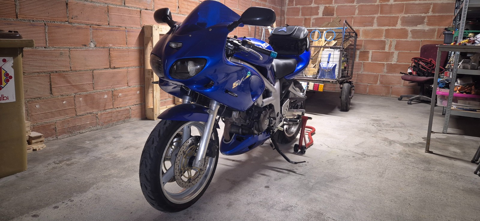 Et titine au fond du garage derrière la bécane.