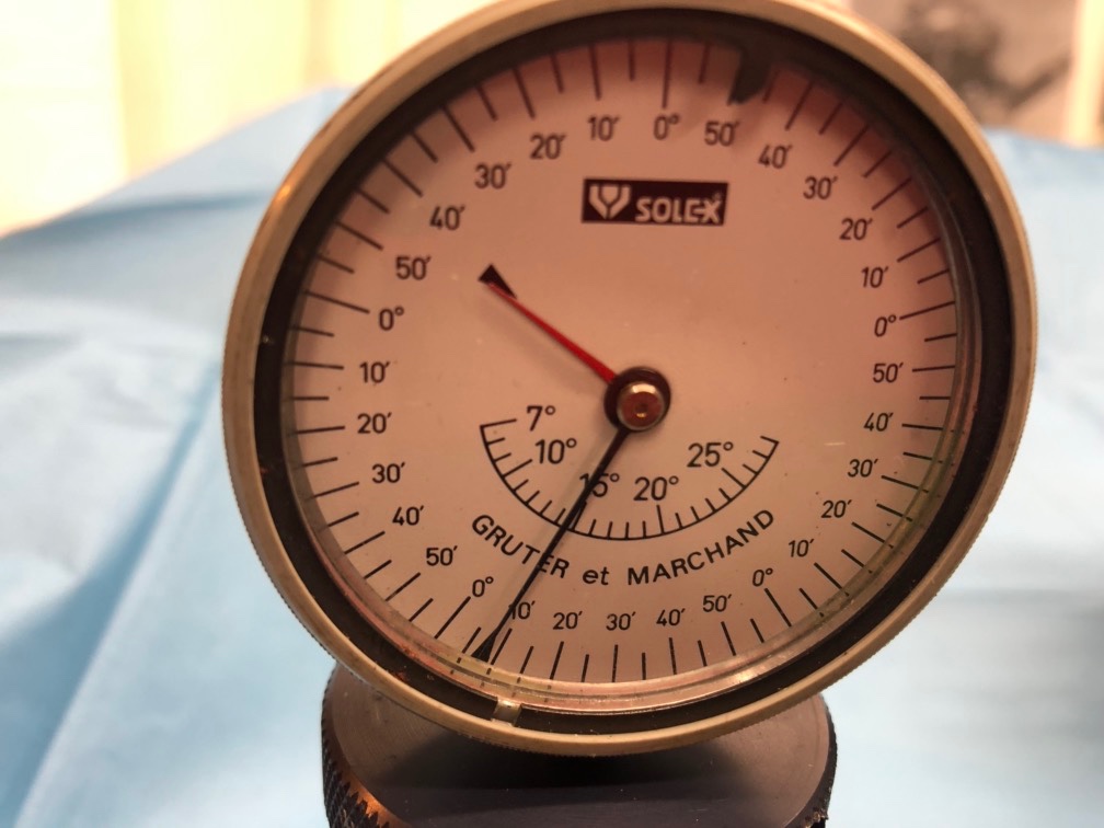 PS : d'où l'idée d'utiliser un inclinomètre (cela coûte moins de 15 euros cela sert en menuiserie ... Ou pour mesurer les dévers que vous prenez avec votre deuche ...) pour remplacer le mesureur mécanique ...) pour mesurer l'ORF : c'est trop facile, il n'y a même pas besoin de faire une référence puisqu'on mesure une variation.