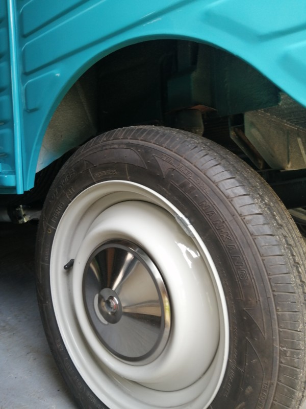 Plusieurs choses ; la hauteur de caisse à l'avant que j'ai relevé est de 165 mm mesurée du sol au châssis à l'endroit indiqué par la RTA pour les véhicules postérieurs à 1975 ( au milieu des deux boulons qui maintiennent l'essieu sur le châssis, celle donnée par la RTA est de 212 mm, je suis donc plutôt bas et je pense que le fait d'avoir pris la photo au ras du sol est trompeur effectivement.