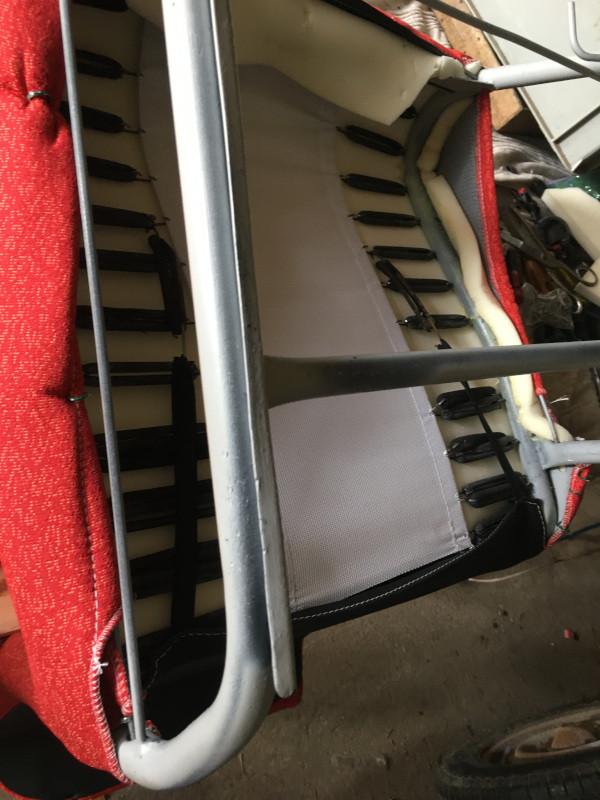 Plus sérieusement, j'ai collé la mousse sur les armatures des sièges. Franchement, je m'y suis mal pris, j'ai du utiliser des ficelles alors que j'aurais pu les sangler, mais je n'en avais pas sous la main...