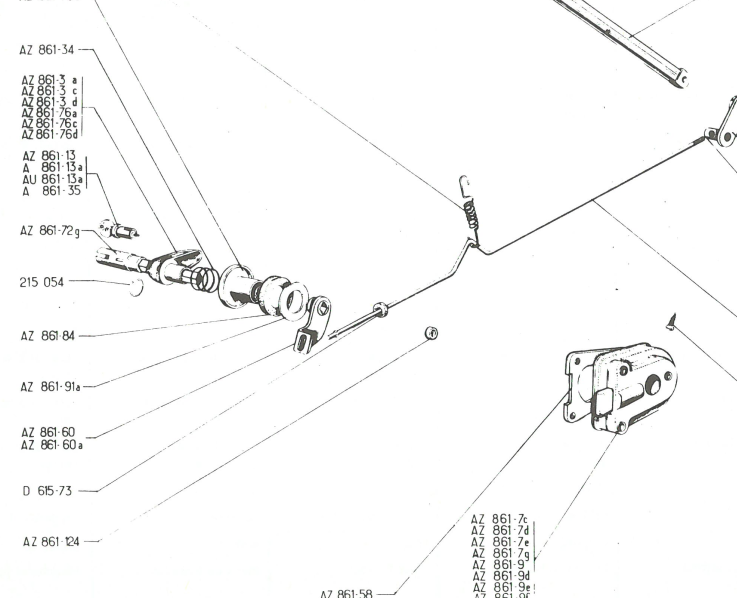 Je ne suis arrivé à un fonctionnement à peu près correct qu'en inversant le levier de renvoi (n° AZ 861-60,) sur lui-même c'est en dire en plaçant la partie la plus épaisse côté serrure, contrairement à ce que l'on voit sur la planche du catalogue des pièces de rechange..