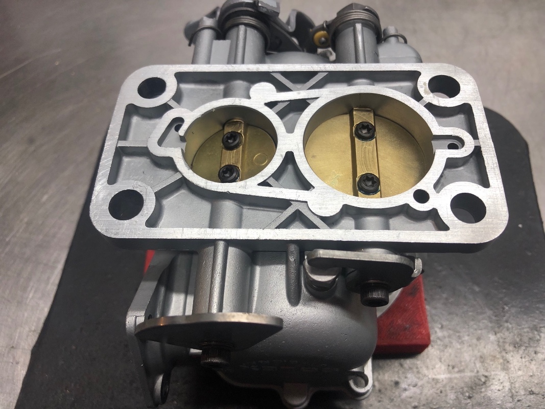Après remontage, pas à pas, bien serré sur un pare chaleur parfaitement plat sur deux joints neufs de qualité, le carburateur fonctionne bien, sans trou dans la plage d’accélération, notamment lors du début de l’ouverture du papillon du corps 2, puis après jusqu’à son ouverture complète…