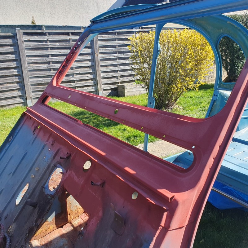 Pascal57 a écrit : ↑14 mars 2025, 07:30Effectivement c'est un ensemble fond + charnière mais nous ne pouvions pas utiliser la pièce telle quelle car sur notre 2cv il faut changer la demi baie, elle est trop abîmée. Mon beau-père a depointé la charnière de la tôle est l'a soudé sur la demi-baie.