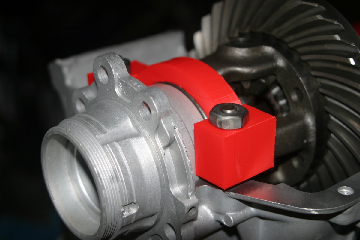 Le fichier de modélisation de cet outil se trouve sur Thingiverse (site d'échange gratuit de fichiers) mais l'usage m'a permis de le modifier et de l'améliorer avec notamment un appui plus facile et une diminution en largeur de la bride ce qui permet de ne bloquer que la cage du roulement et pas le palier alu !