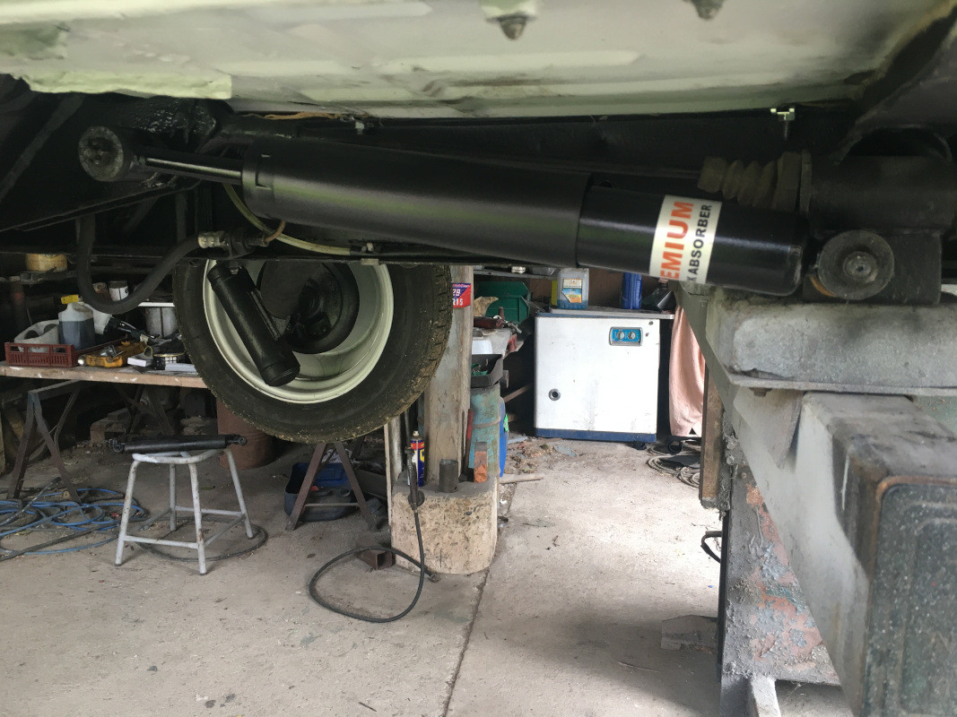 Ce matin, j'ai monté les amortisseurs BURTON que j'ai reçus. Le remplacement des anciens n'était pas de superflu, ils fuyaient l'huile tous les deux : Opération facile, la suspension me semble stable, plus de rebonds Ensuite, j'ai entièrement démonté l'avertisseur sonore.