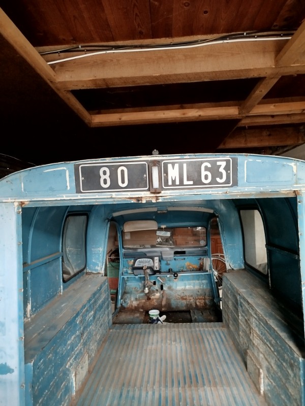 ça y est elle est dans mon garage. Ça n'a pas été simple (freins grippé et roue crevée), heureusement qu'il y avait un treuil sur le Porte auto et des potes pour la pousser.