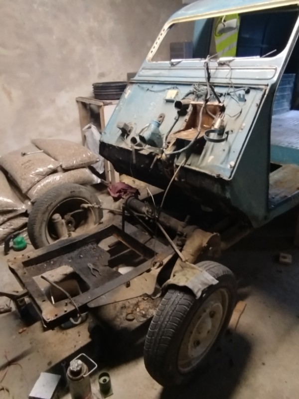 Ce matin j'ai fait un état des lieux, j'ai démonté les ailes, le capot,les portes avant et arrière. On y voit plus clair. Bilan beaucoup de boulot en carrosserie mais c'était prévu. Vivement que la caisse soit enlevée pour voir l'état du châssis.