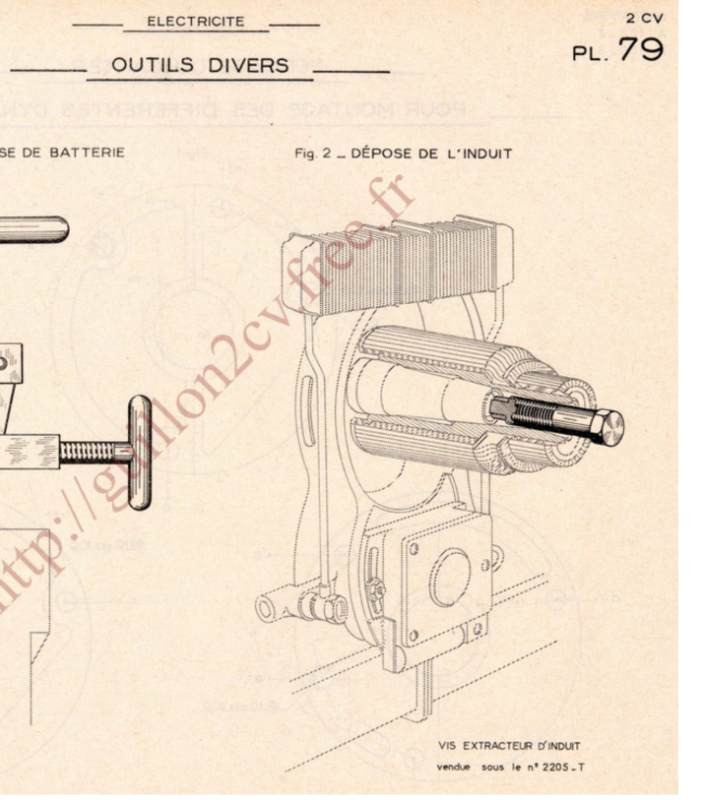 J'ai bien peur, Gaëtan, que l'induit de la dynamo soit resté solidaire du ventilateur. C'est pour cette raison que tu ne peux dégager le ventilateur que de quelques centimètres...