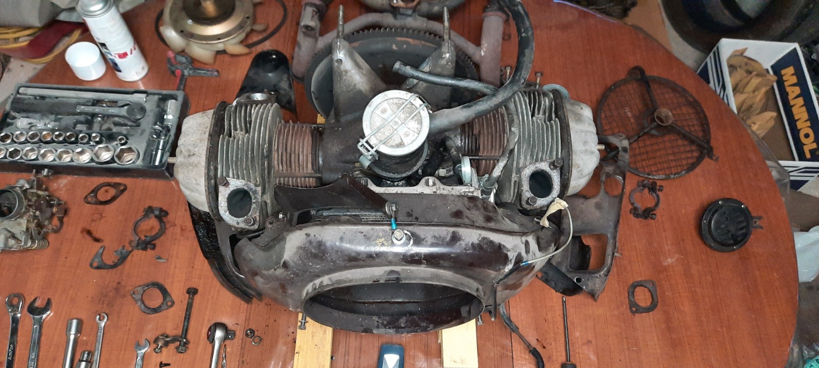 Pour l'étape suivante j'ai dû faire un peu de rangement et de place dans le garage car c'est un "gros" morceau : le moteur !