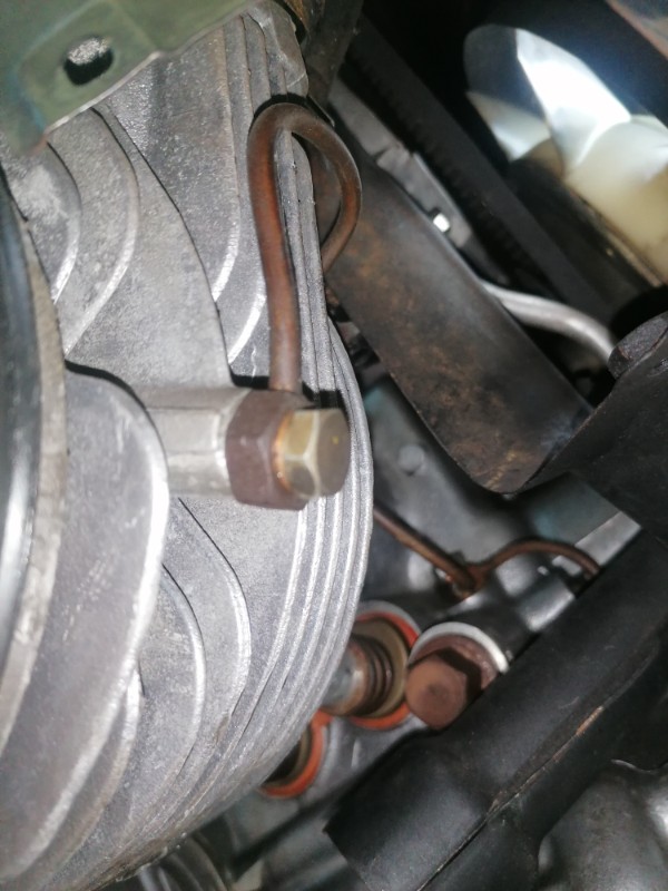 Or, aucun de ces élements fuit, après léger démontage j'ai comme l'impression que la fuite se situe au dessus du cylindre, les conduits d'air étant très huileux au dessus/arrière du cylindre (voir photo)