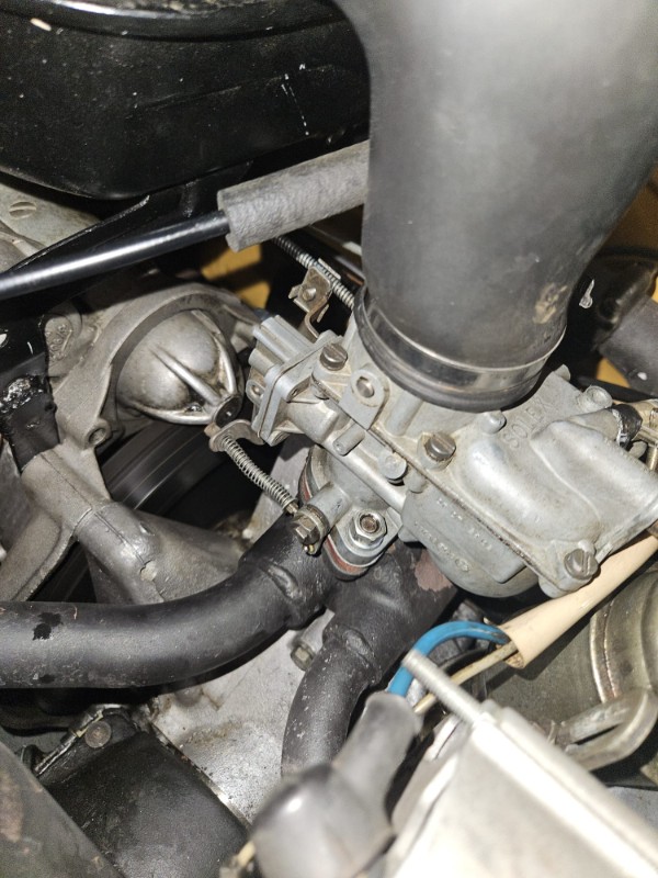 Pou info, après une accélération, la vis de ralenti revient immédiatement en butée, donc pas de problème avec la tige d'accélération...