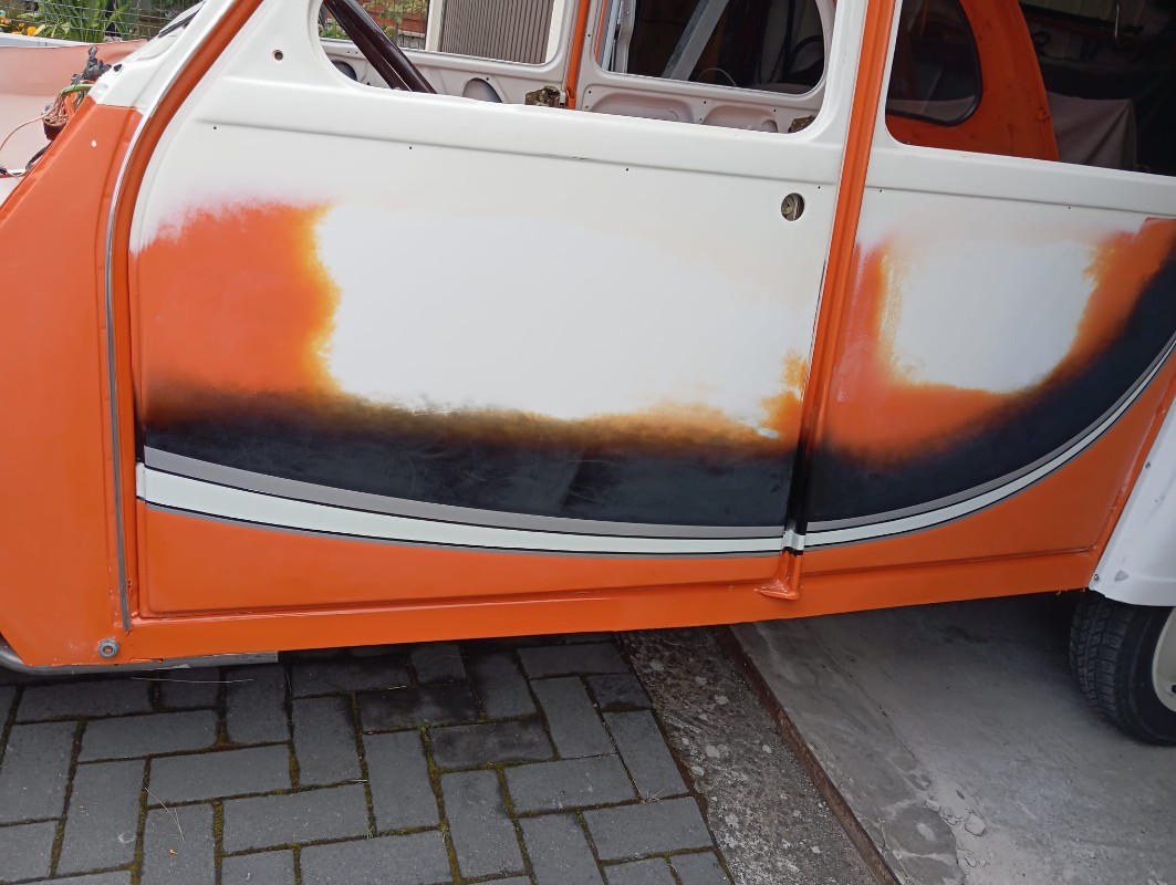 a la différence prêt , les 2cv étaient peintes en "brillant direct "